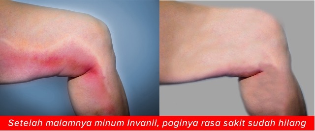 Suatu hari saya pergi ke dokter, dan dia rekomendasiin saya supayacoba produk Invanil (dia masih muda, mungkin karena idealis dia masih berpikir bahwa tujuan medis adalah membantu orang, bukan cuma merampas uang mereka). Setelah mengonsumsi Invanil efeknya langsung keliatan. Sakit yang biasanya saya rasain langsung ilang, tapi saya masih minum produk ini sampe abis, kayak yang dokter bilang. Setelah 3 minggu, saya lupa pernah punya masalah sendi. Saya merasa sehat lagi!